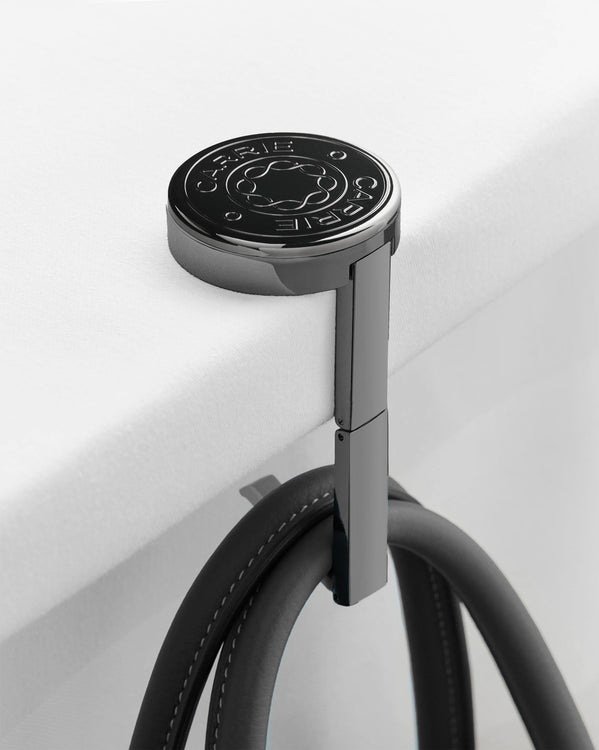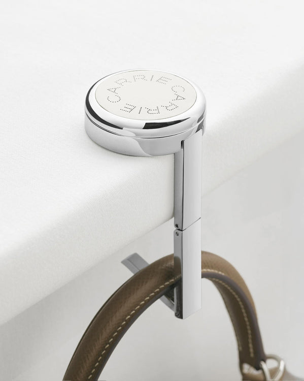 See how VYNA transforms any table into a handbag hanger. Its anti-slip pads and premium metal construction keep your bag secure and within reach wherever you are.